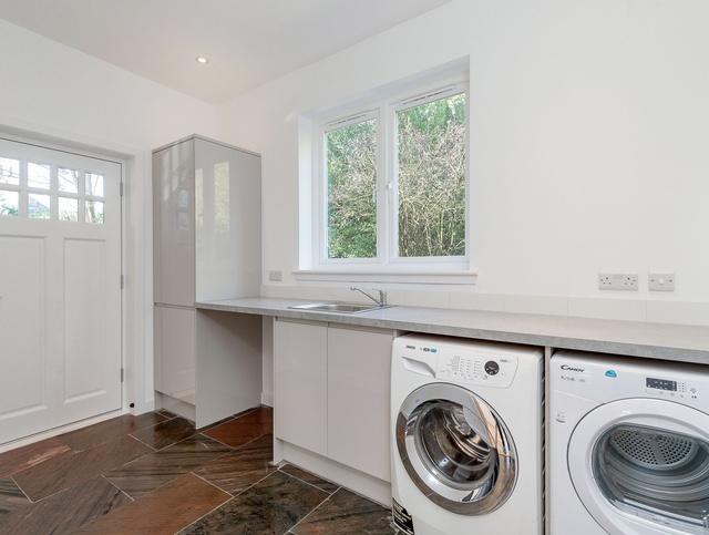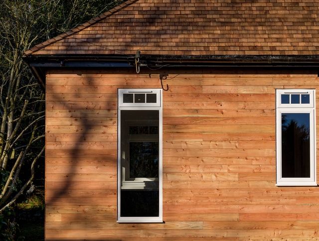 Partial demolition and extensive internal alterations to open up areas to create a new bright and spacious kitchen dining room and utility room. Full renewal of western red cedar shingle roof and larch cladding to external walls.